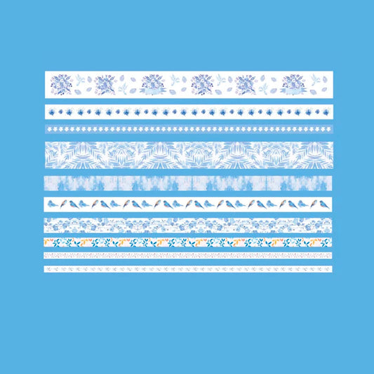 🔥 Zestaw 10 taśm washi – Taśma Washi papierowa dekoracyjna Niebieska Zima