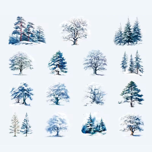 W promocji🔥 30 szt, Naklejki zimowe Ośnieżone drzewa