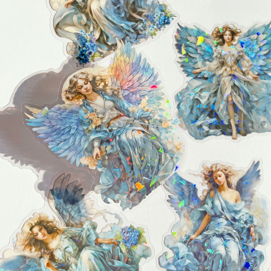 5 szt, Zestaw naklejek z brokatem do scrapbookingu Anioły Niebieskie