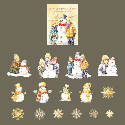 🔥 15 szt, Naklejki świąteczne Bałwanki i płatki złote