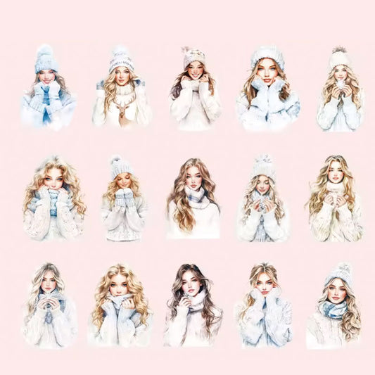 30 szt, Naklejki portrety zimowe Dziewczyny w swetrach