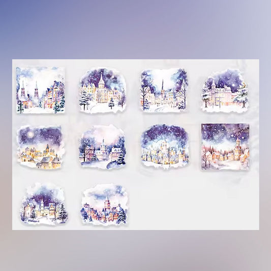 W promocji10 szt, Naklejki Fioletowe zimowe miasteczko