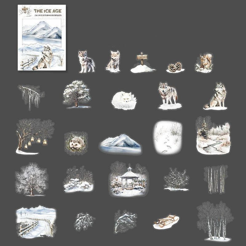 25 szt, Naklejki zimowe Wilki i śnieżny krajobraz